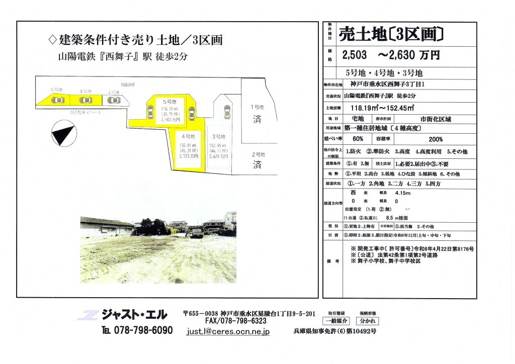 | 所在地 | 兵庫県神戸市垂水区西舞子3丁目 西舞子3売土地 |